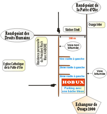 - A 800m de Ouaga-Inter, en allant du rond-point de la Patte d'Oie vers l'échangeur de Ouaga 2000